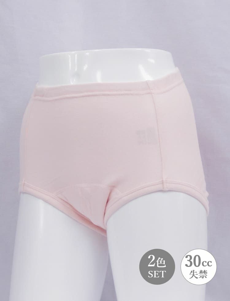 締め付けない・食い込まない やわらか吸水ショーツ ピンク&ベージュ2色セット 吸水量30ml