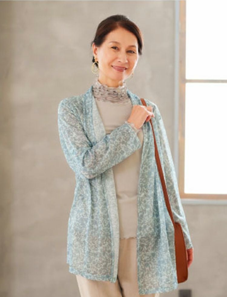 ・涼しげなプリント柄で1枚羽織れば華やかになります。