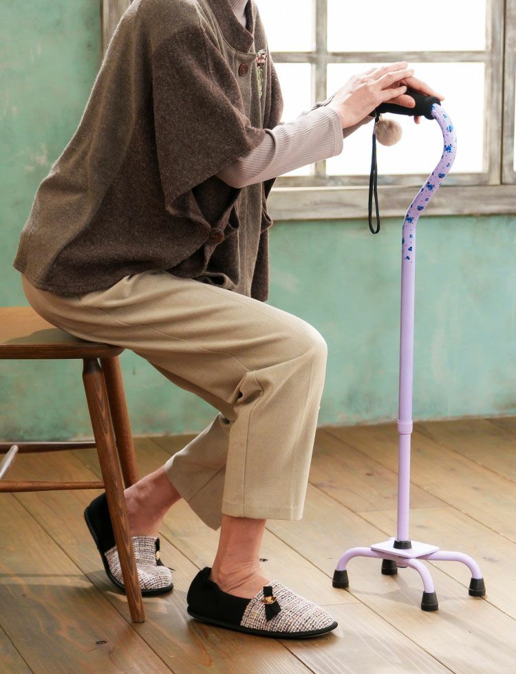 折りたたみ杖・一本杖では不安な方は、杖先が4点支持の杖、4本杖(介護杖)などの自立型杖がおすすめです。