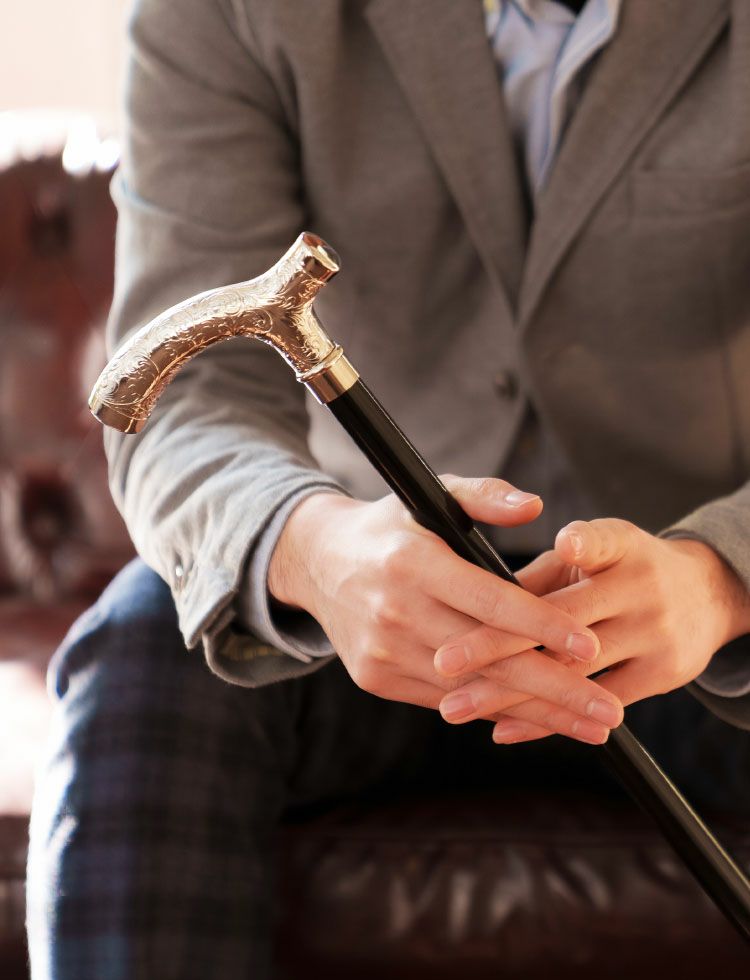 メンズ 木製杖 オーダーハンドメイド クラシック シルバー 唐草模様彫り