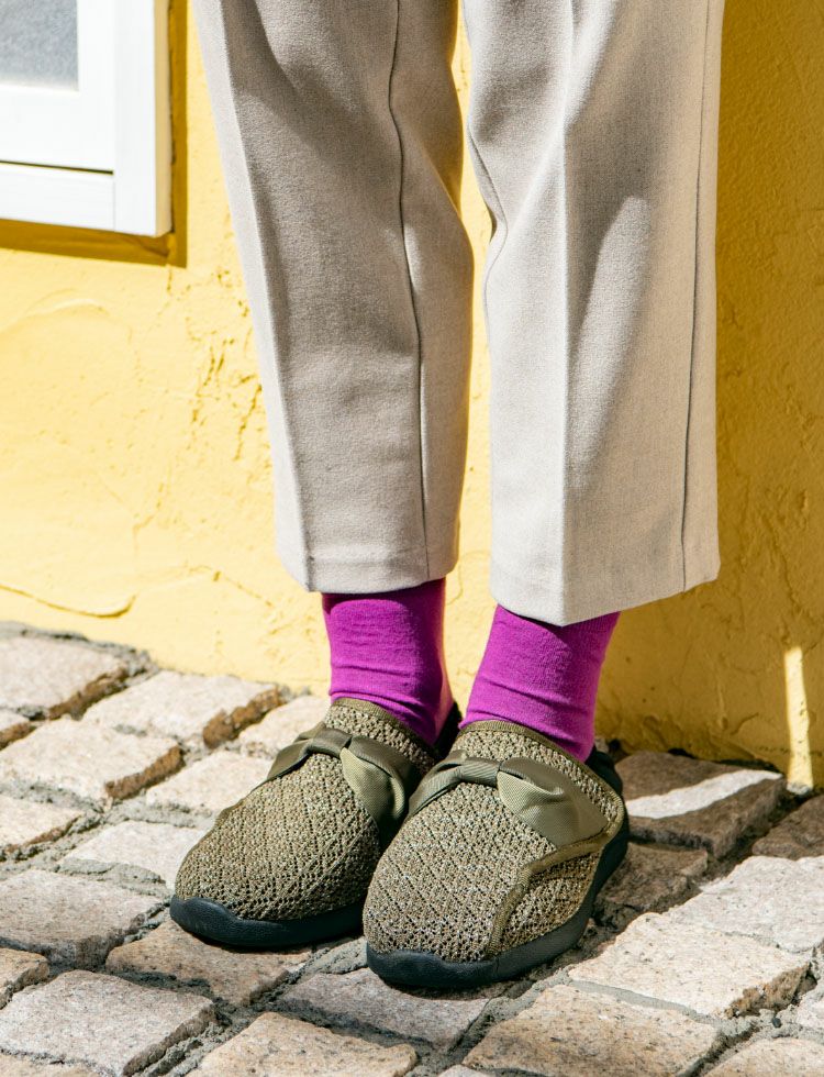柔軟で軽やかな歩き心地に。 ◎アッパー素材は、足が蒸れない素材。長時間履いても、汗をかいてもOK!