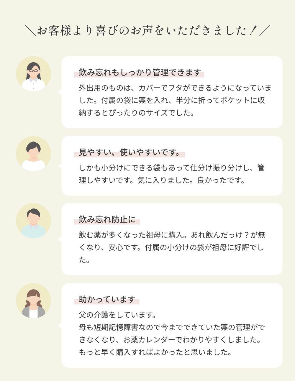 お薬の飲み忘れ防止としても、