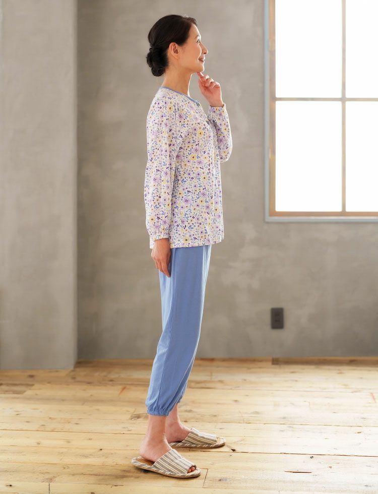 小さいサイズ 前開きパジャマ 花柄