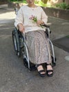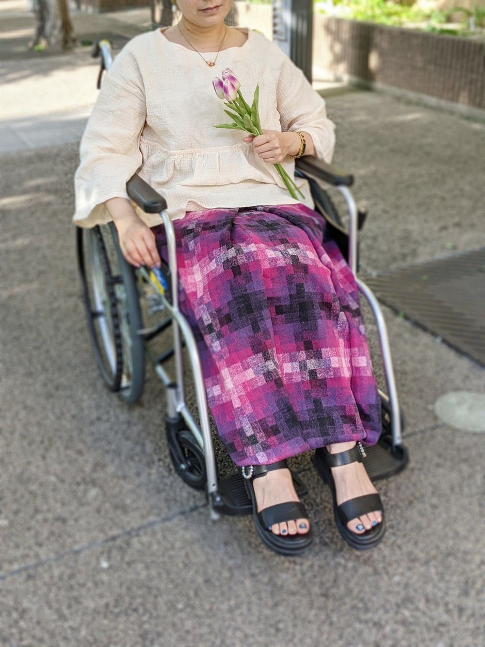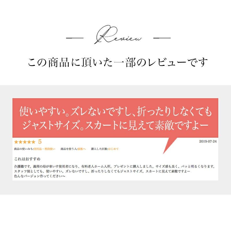 介護職です。義理の母が車いす使用者になり、有料老人ホーム入所。プレゼントに購入しました。サイズ感も良く、パッと明るくなります。スタッフ側としても、使いやすい。ズレないですし、折ったりしなくてもジャストサイズ。スカートに見えて素敵ですよー 色んなバージョン作ってください~