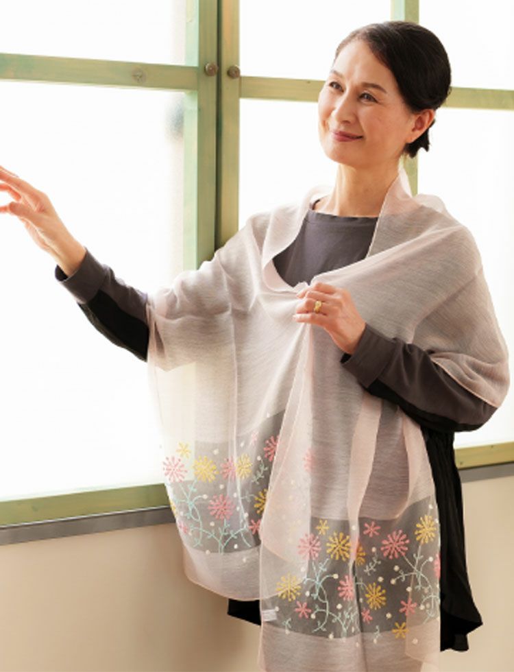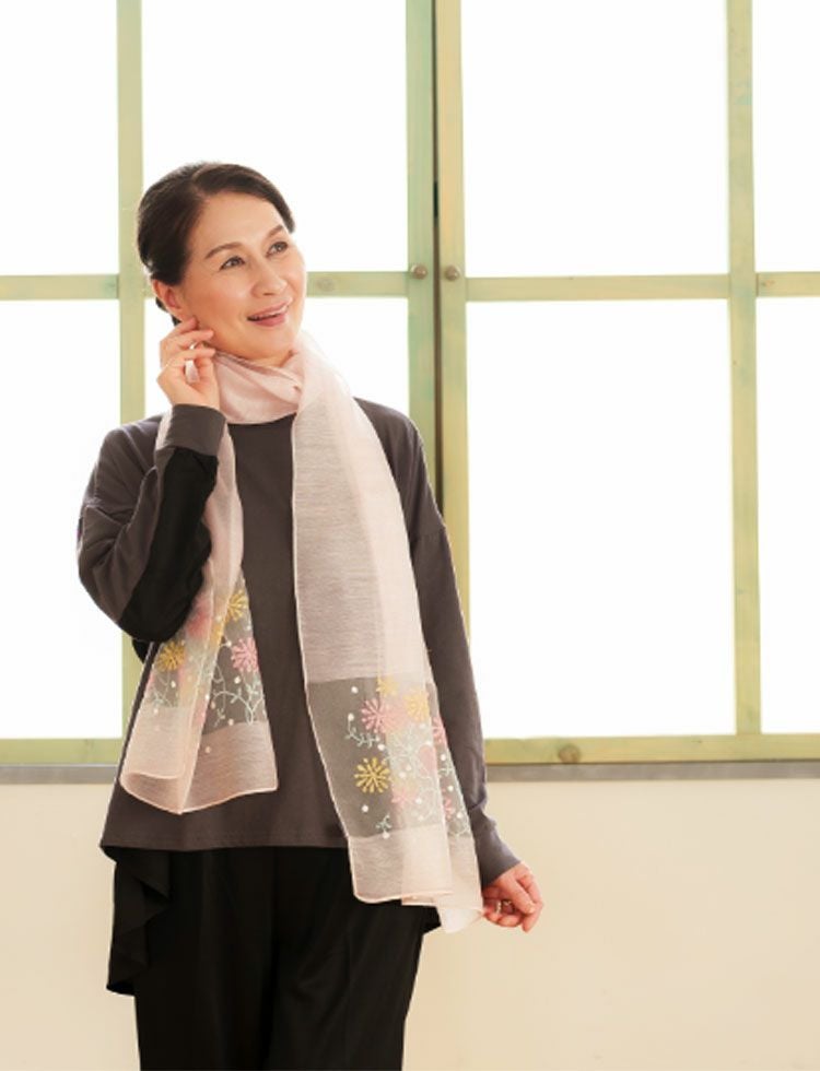 シルク混 花刺繍ストール