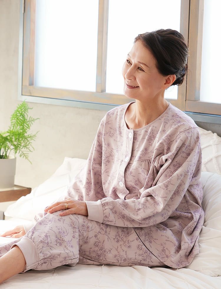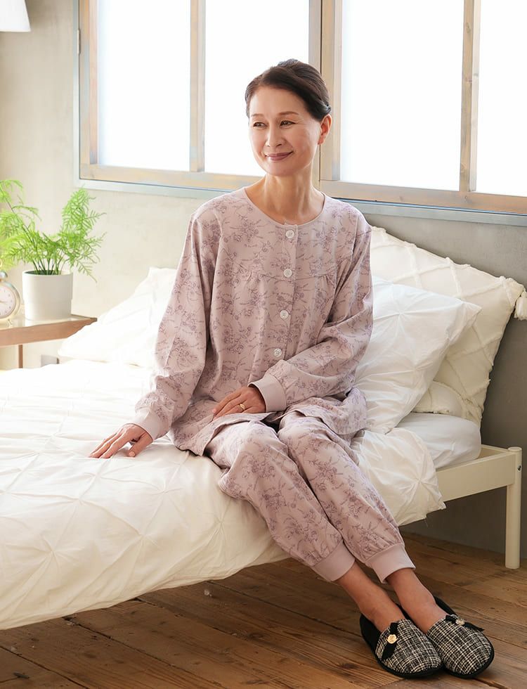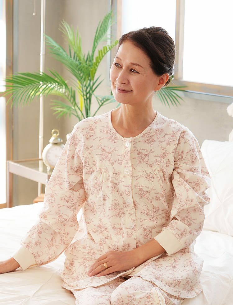 商品名介護用フルオープンパジャマ綿100% French Flower