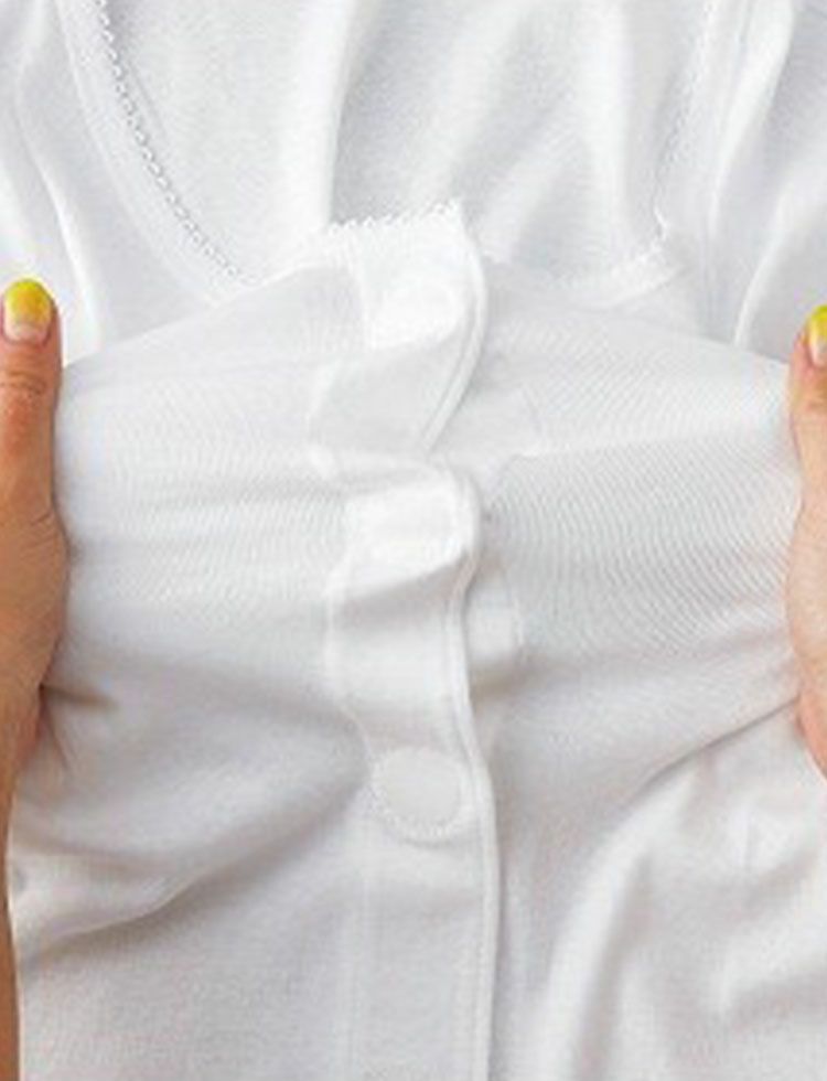 ◎ゆったり設計と後ろ見頃長めの設計でさらに着やすく、脱ぎやすい肌着になりました!
