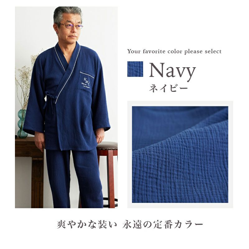 商品名Wガーゼ メンズ 前開きパジャマ 作務衣タイプ
