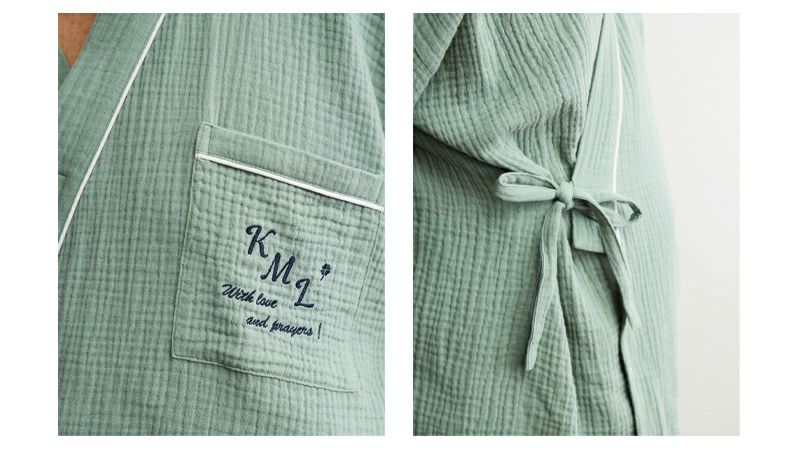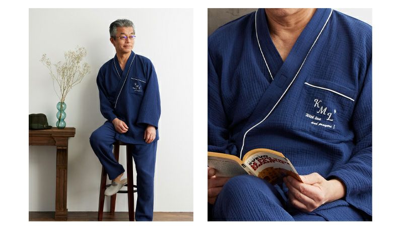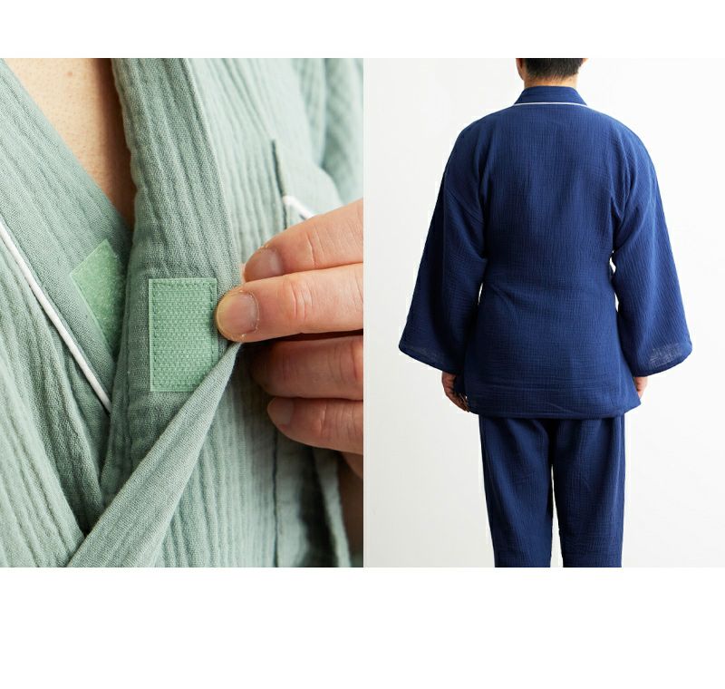 作務衣タイプは、脱ぎ着が簡単なので、入院中や施設に入居中の方へのギフトにも大変おすすめの1枚です。