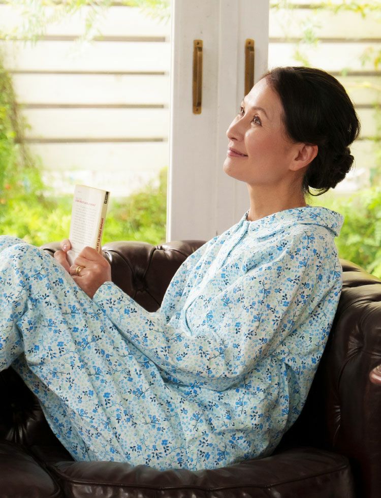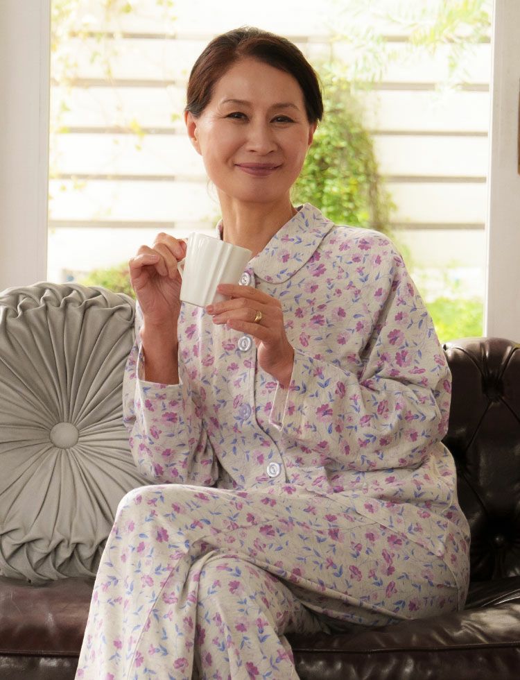前開きでガーゼ素材のパジャマ。デパートで人気の肌ざわりの良いパジャマがギフトにおすすめ!